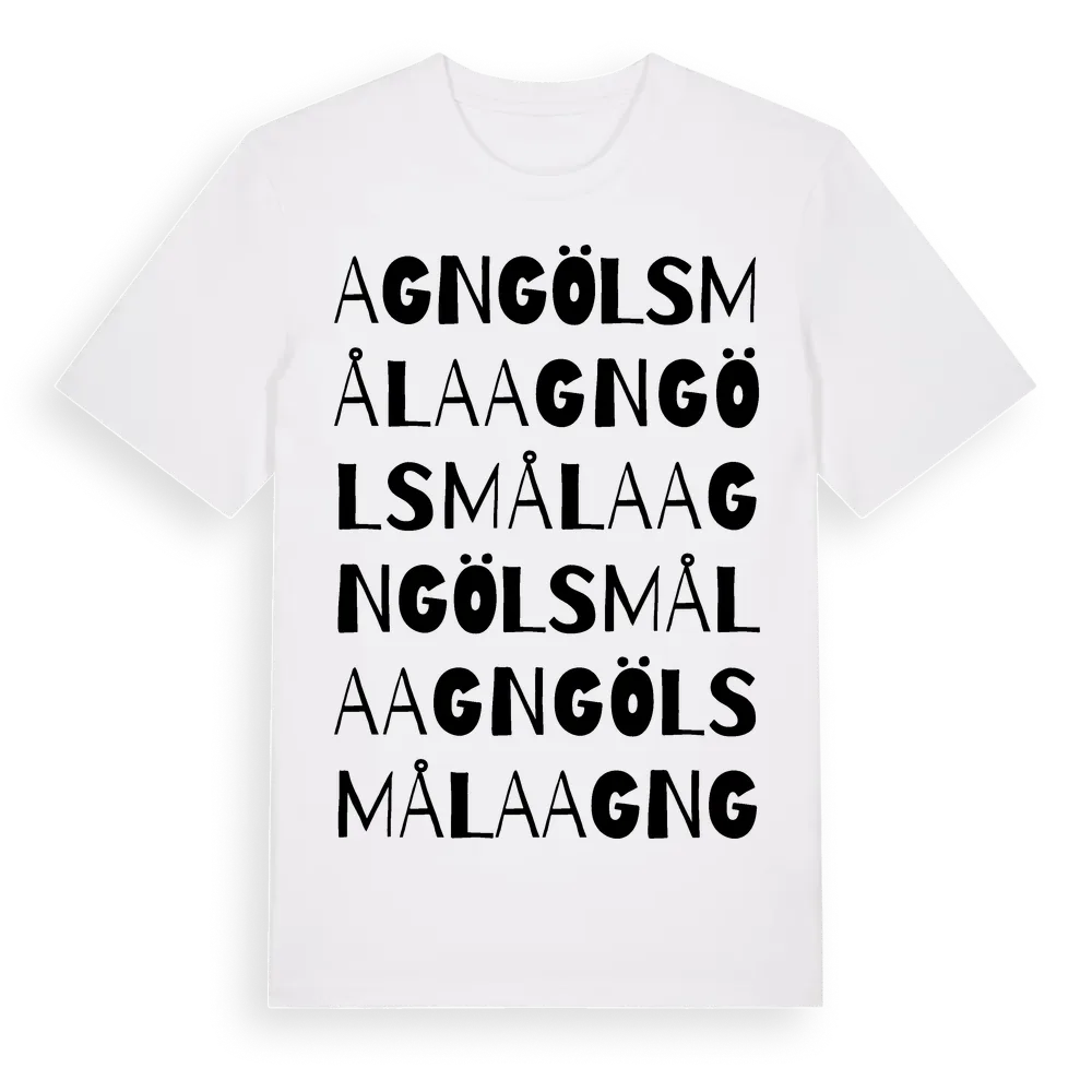 Agngölsmåla ordlek t-shirt är inspirerad av Agngölsmåla i Blekinge län, Sverige. Tröjan är designad för dig som har en speciell koppling till platsen – oavsett om du bor här, har rötterna här eller bara älskar Agngölsmåla.