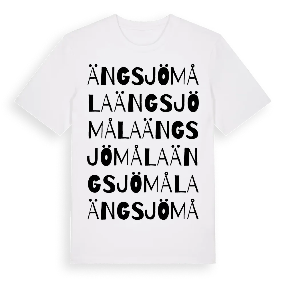 Ängsjömåla ordlek t-shirt är inspirerad av byn Ängsjömåla i Blekinge län, Sverige. Tröjan är designad för dig som har en speciell koppling till platsen – oavsett om du bor här, har rötterna här eller bara älskar Ängsjömåla.