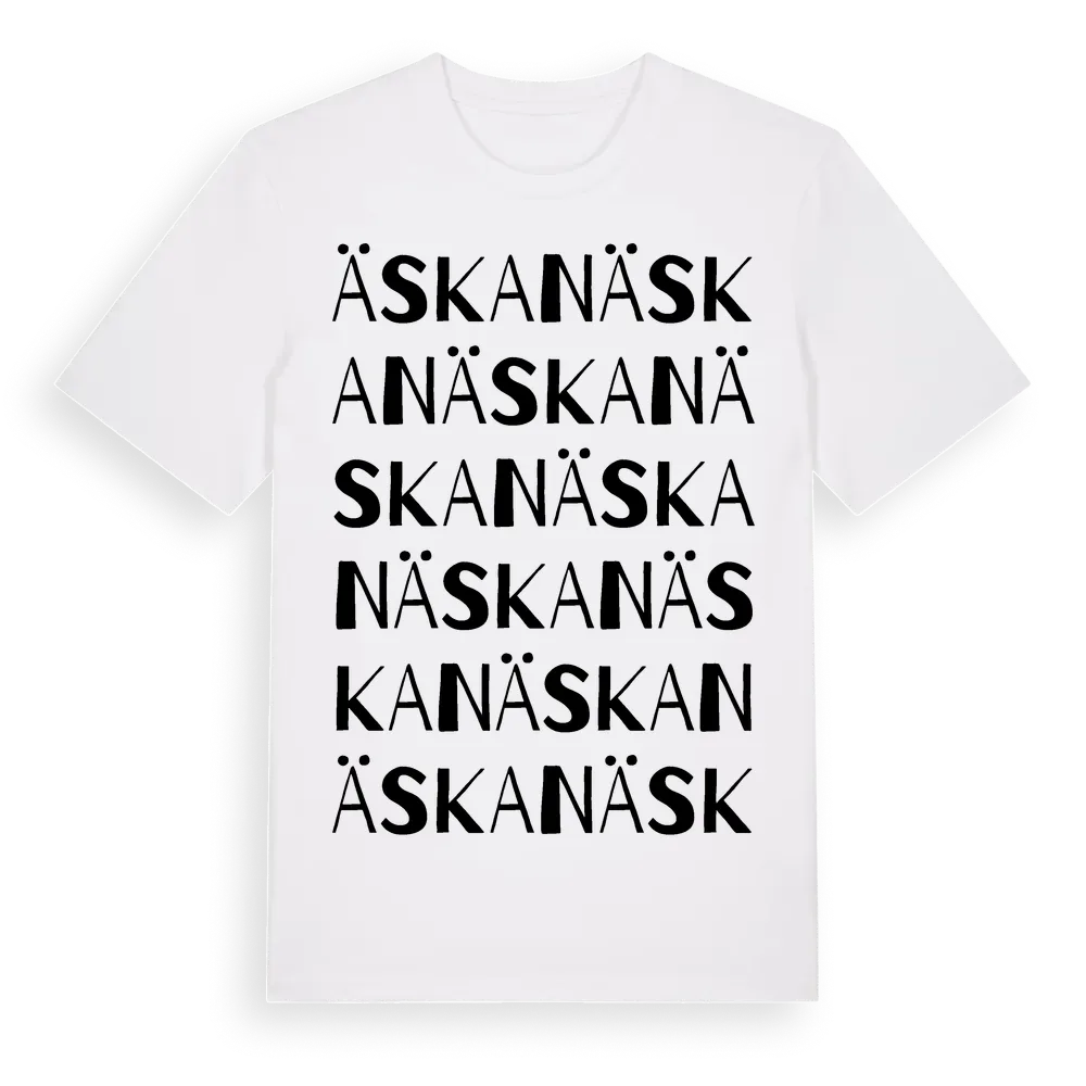 Äskan ordlek t-shirt är inspirerad av Äskan i Blekinge län, Sverige. Tröjan är designad för dig som har en speciell koppling till platsen – oavsett om du bor här, har rötterna här eller bara älskar Äskan.