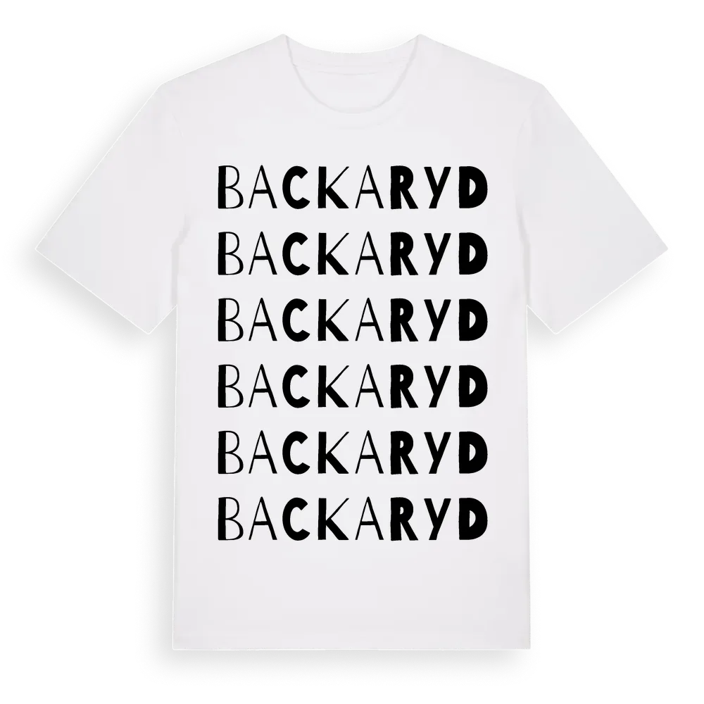 Backaryd ordlek t-shirt är inspirerad av byn Backaryd i Blekinge län, Sverige. Tröjan är designad för dig som har en speciell koppling till platsen – oavsett om du bor här, har rötterna här eller bara älskar Backaryd.