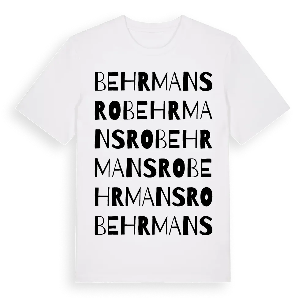 Behrmansro ordlek t-shirt är inspirerad av Behrmansro i Blekinge län, Sverige. Tröjan är designad för dig som har en speciell koppling till platsen – oavsett om du bor här, har rötterna här eller bara älskar Behrmansro.