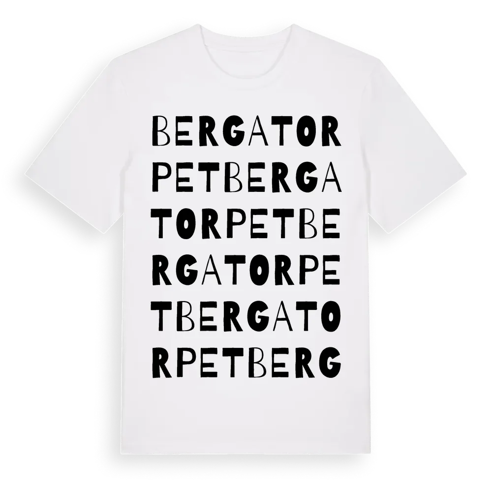 Bergatorpet ordlek t-shirt är inspirerad av Bergatorpet i Blekinge län, Sverige. Tröjan är designad för dig som har en speciell koppling till platsen – oavsett om du bor här, har rötterna här eller bara älskar Bergatorpet.