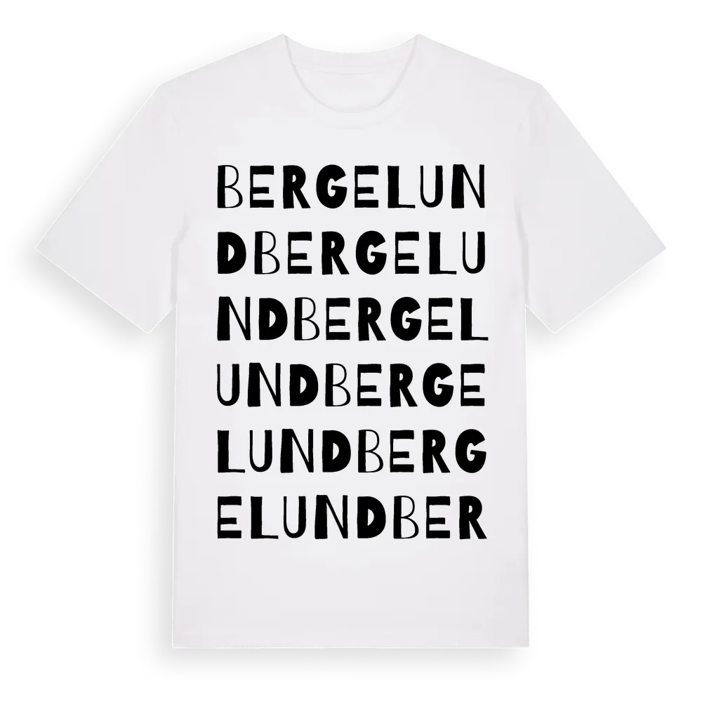 Bergelund ordlek t-shirt är inspirerad av Bergelund i Blekinge län, Sverige. Tröjan är designad för dig som har en speciell koppling till platsen – oavsett om du bor här, har rötterna här eller bara älskar Bergelund.