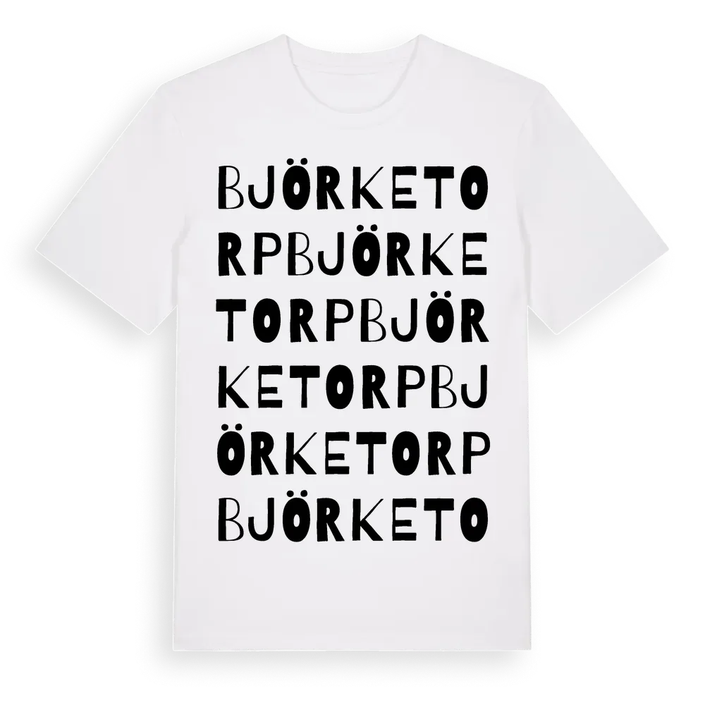 Björketorp ordlek t-shirt är inspirerad av Björketorp i Blekinge län, Sverige. Tröjan är designad för dig som har en speciell koppling till platsen – oavsett om du bor här, har rötterna här eller bara älskar Björketorp.