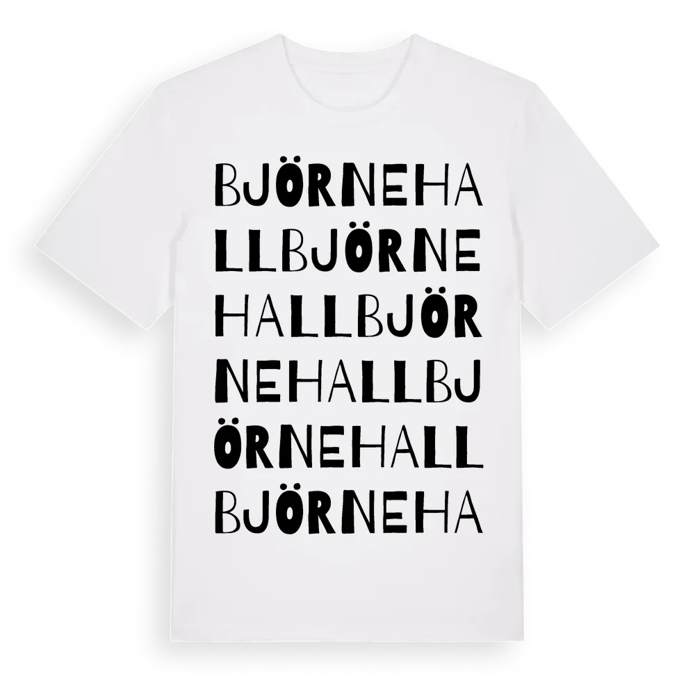 Björnehall ordlek t-shirt är inspirerad av Björnehall i Blekinge län, Sverige. Tröjan är designad för dig som har en speciell koppling till platsen – oavsett om du bor här, har rötterna här eller bara älskar Björnehall.