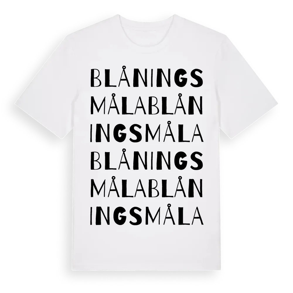 Blåningsmåla ordlek t-shirt är inspirerad av byn Blåningsmåla i Blekinge län, Sverige. Tröjan är designad för dig som har en speciell koppling till platsen – oavsett om du bor här, har rötterna här eller bara älskar Blåningsmåla.