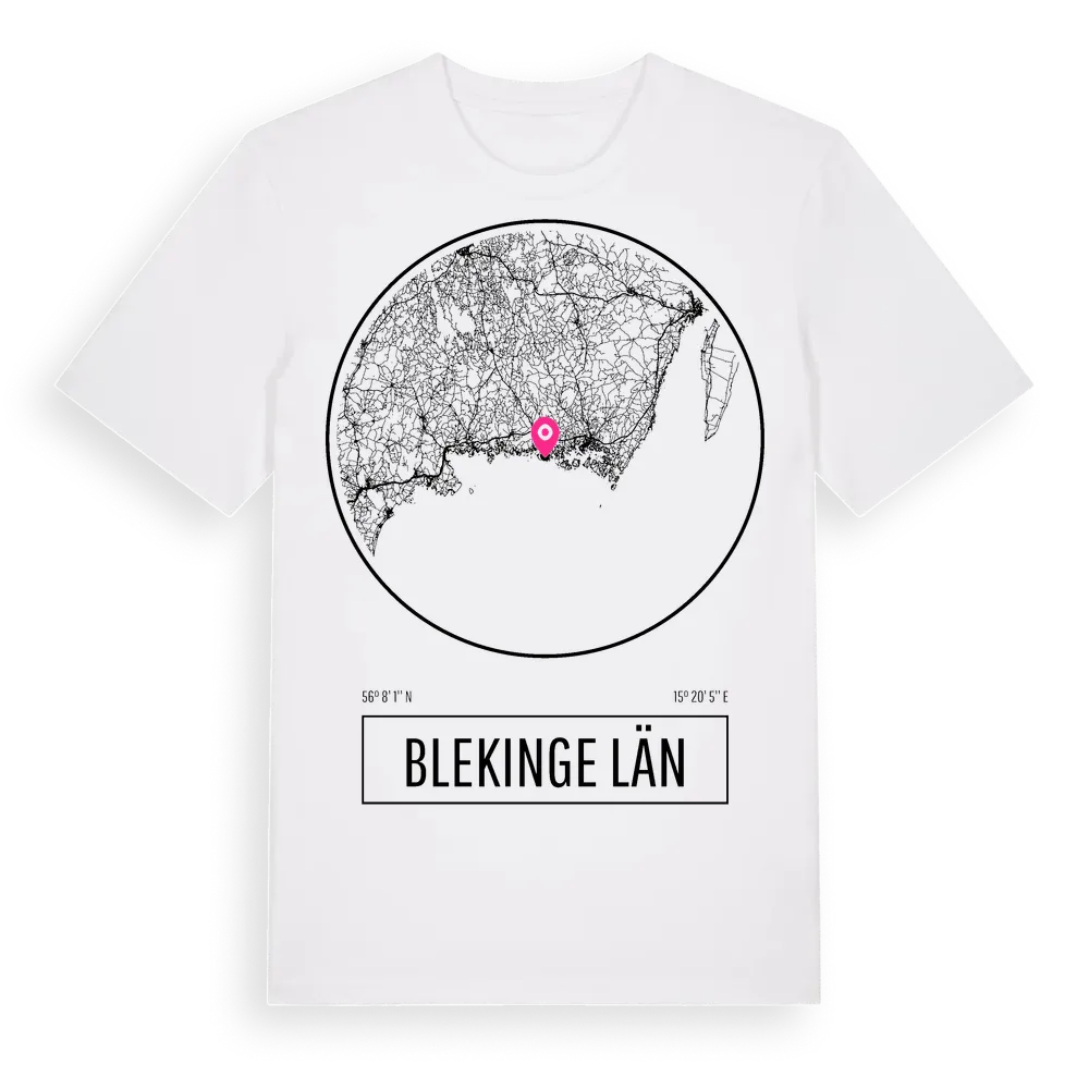 Blekinge Län t-shirt är inspirerad av Blekinge Län i Blekinge län, Sverige. Tröjan är designad för dig som har en speciell koppling till platsen – oavsett om du bor här, har rötterna här eller bara älskar Blekinge Län.