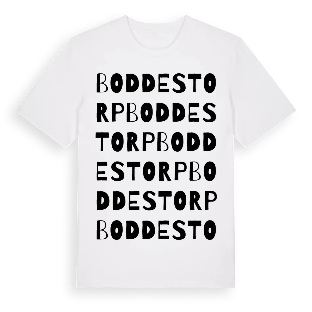 Boddestorp ordlek t-shirt är inspirerad av byn Boddestorp i Blekinge län, Sverige. Tröjan är designad för dig som har en speciell koppling till platsen – oavsett om du bor här, har rötterna här eller bara älskar Boddestorp.