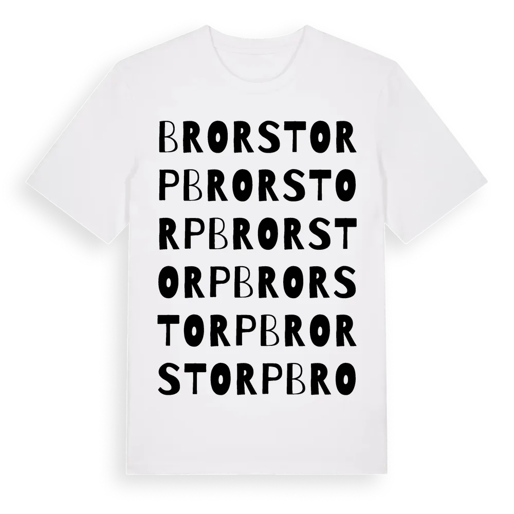 Brorstorp ordlek t-shirt är inspirerad av Brorstorp i Blekinge län, Sverige. Tröjan är designad för dig som har en speciell koppling till platsen – oavsett om du bor här, har rötterna här eller bara älskar Brorstorp.