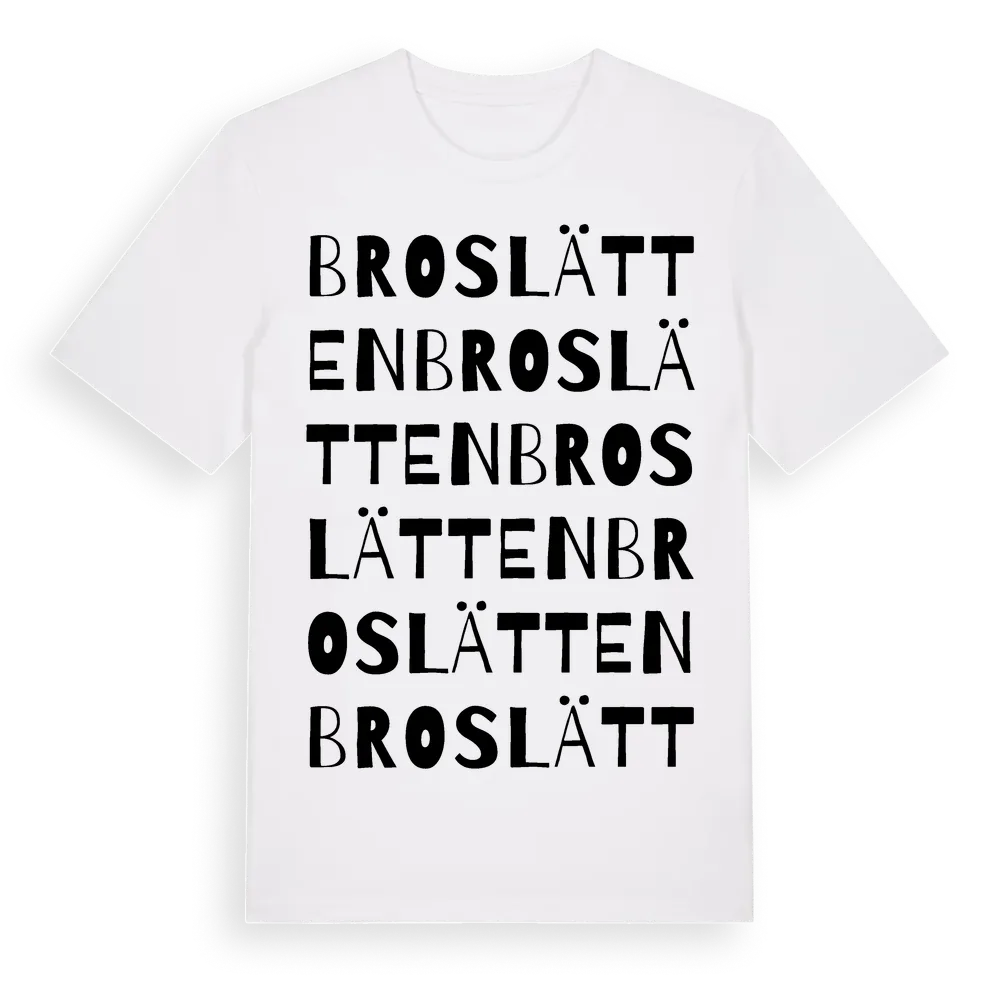 Broslätten ordlek t-shirt är inspirerad av Broslätten i Blekinge län, Sverige. Tröjan är designad för dig som har en speciell koppling till platsen – oavsett om du bor här, har rötterna här eller bara älskar Broslätten.