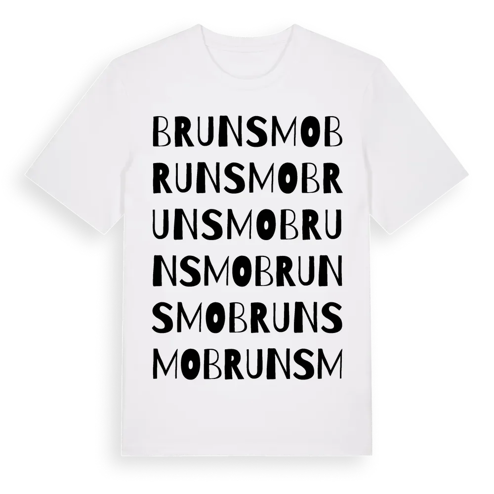 Brunsmo ordlek t-shirt är inspirerad av byn Brunsmo i Blekinge län, Sverige. Tröjan är designad för dig som har en speciell koppling till platsen – oavsett om du bor här, har rötterna här eller bara älskar Brunsmo.