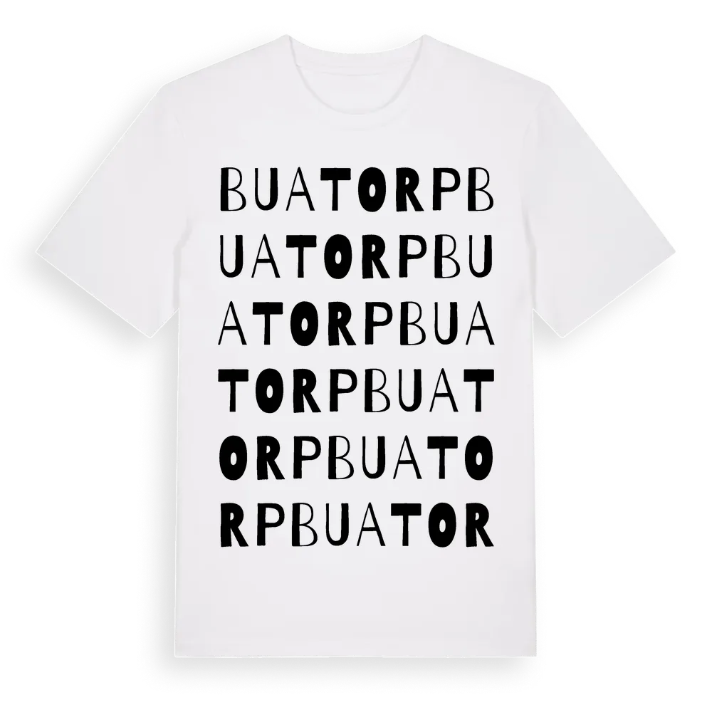 Buatorp ordlek t-shirt är inspirerad av Buatorp i Blekinge län, Sverige. Tröjan är designad för dig som har en speciell koppling till platsen – oavsett om du bor här, har rötterna här eller bara älskar Buatorp.