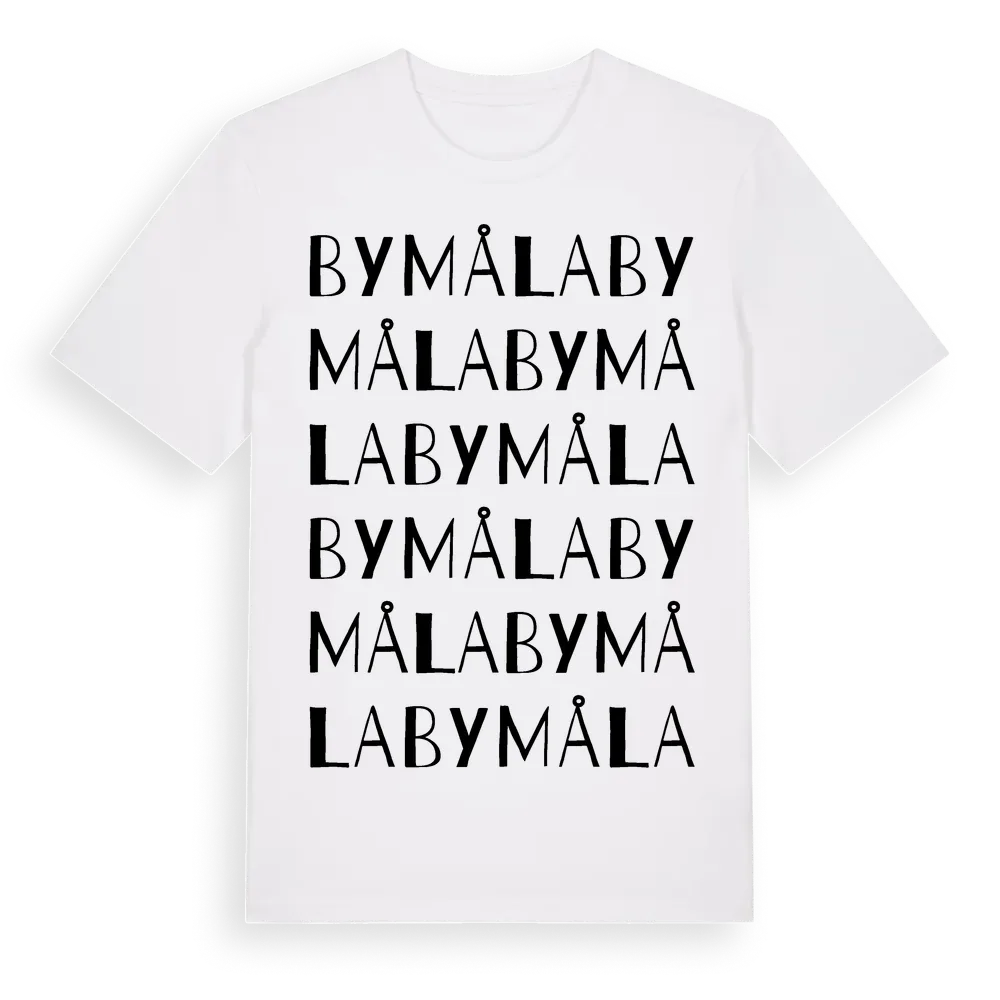 Bymåla ordlek t-shirt är inspirerad av byn Bymåla i Blekinge län, Sverige. Tröjan är designad för dig som har en speciell koppling till platsen – oavsett om du bor här, har rötterna här eller bara älskar Bymåla.