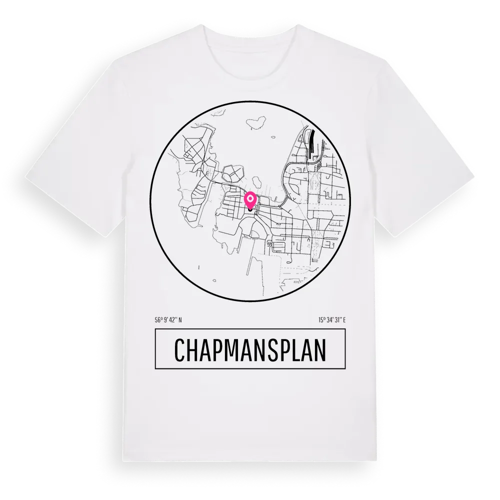 Chapmansplan t-shirt är inspirerad av Chapmansplan i Blekinge län, Sverige. Tröjan är designad för dig som har en speciell koppling till platsen – oavsett om du bor här, har rötterna här eller bara älskar Chapmansplan.