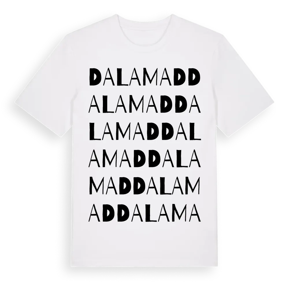 Dalamad ordlek t-shirt är inspirerad av byn Dalamad i Blekinge län, Sverige. Tröjan är designad för dig som har en speciell koppling till platsen – oavsett om du bor här, har rötterna här eller bara älskar Dalamad.
