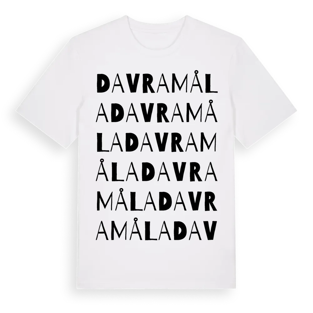 Davramåla ordlek t-shirt är inspirerad av byn Davramåla i Blekinge län, Sverige. Tröjan är designad för dig som har en speciell koppling till platsen – oavsett om du bor här, har rötterna här eller bara älskar Davramåla.