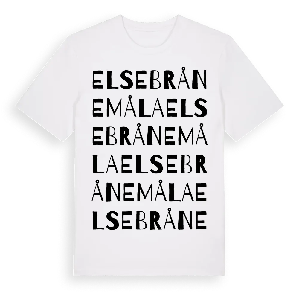 Elsebrånemåla ordlek t-shirt är inspirerad av byn Elsebrånemåla i Blekinge län, Sverige. Tröjan är designad för dig som har en speciell koppling till platsen – oavsett om du bor här, har rötterna här eller bara älskar Elsebrånemåla.