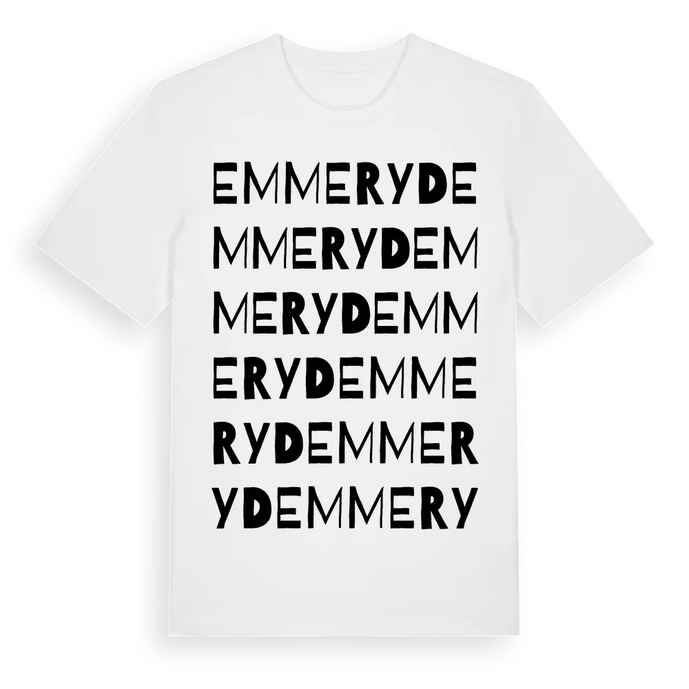Emmeryd ordlek t-shirt är inspirerad av byn Emmeryd i Blekinge län, Sverige. Tröjan är designad för dig som har en speciell koppling till platsen – oavsett om du bor här, har rötterna här eller bara älskar Emmeryd.