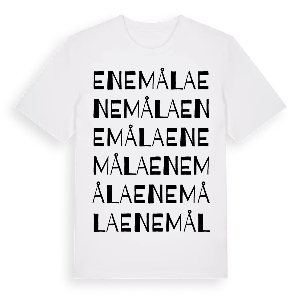 Enemåla ordlek t-shirt är inspirerad av Enemåla i Blekinge län, Sverige. Tröjan är designad för dig som har en speciell koppling till platsen – oavsett om du bor här, har rötterna här eller bara älskar Enemåla.