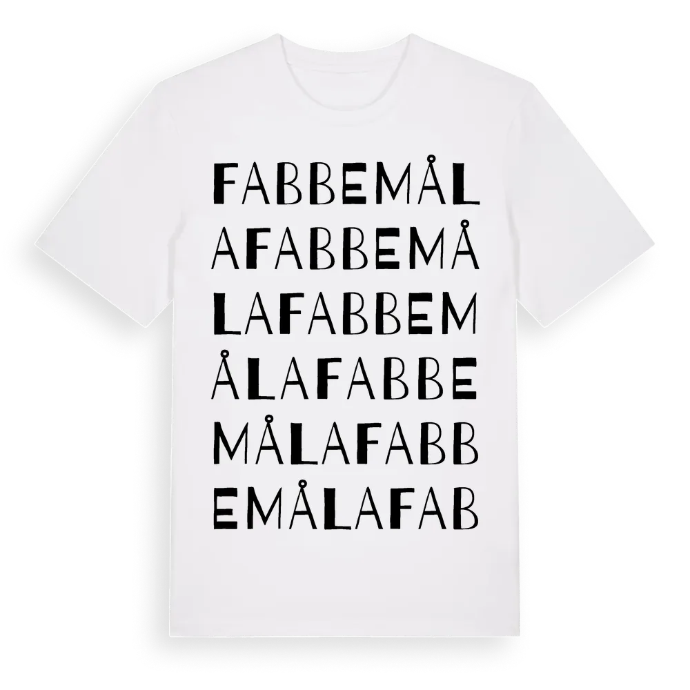 Fabbemåla ordlek t-shirt är inspirerad av byn Fabbemåla i Blekinge län, Sverige. Tröjan är designad för dig som har en speciell koppling till platsen – oavsett om du bor här, har rötterna här eller bara älskar Fabbemåla.
