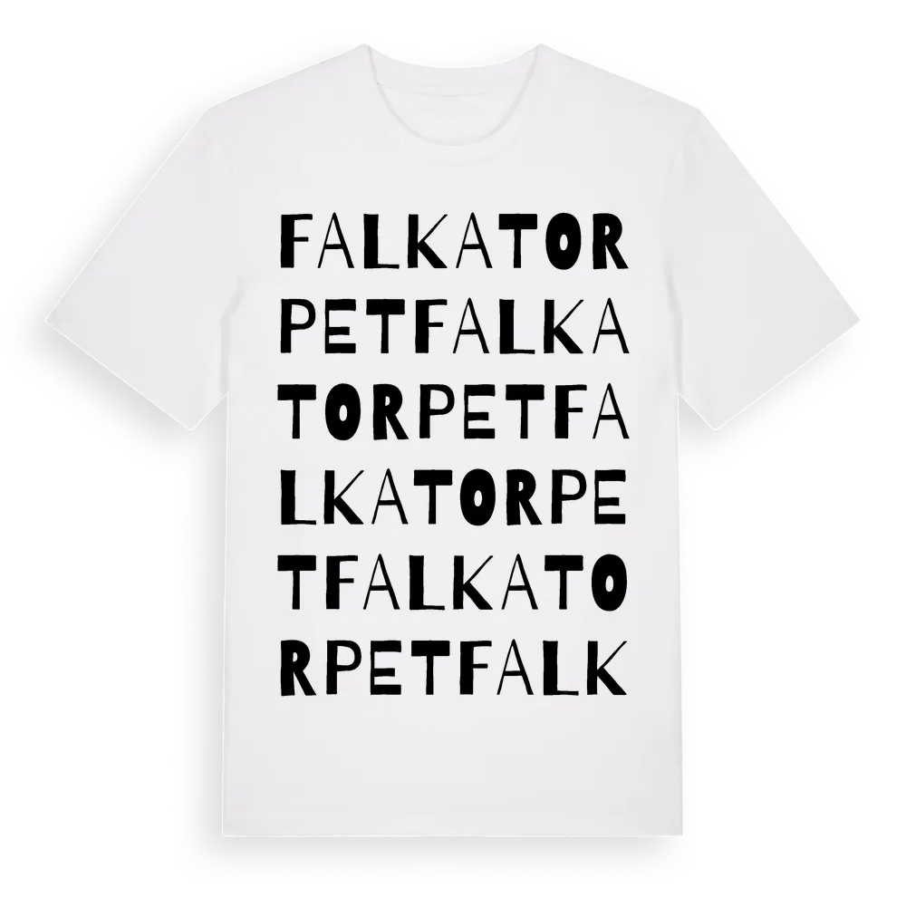 Falkatorpet ordlek t-shirt är inspirerad av Falkatorpet i Blekinge län, Sverige. Tröjan är designad för dig som har en speciell koppling till platsen – oavsett om du bor här, har rötterna här eller bara älskar Falkatorpet.
