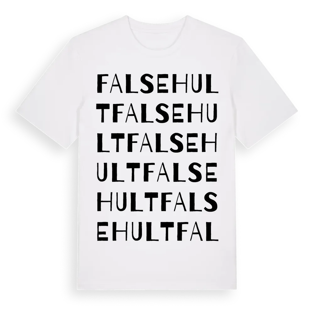 En ordlek byggd på Falsehults namn. Subtilt och klurig – ett motiv som bara de som verkligen känner platsen fullt ut förstår. Premium bomull, unisex – från byn Falsehult i Blekinge län.