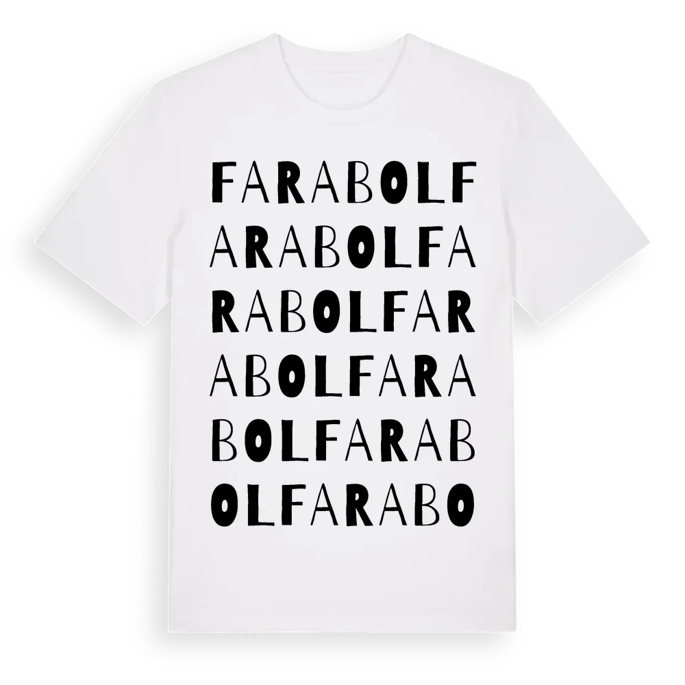 En ordlek byggd på Farabols namn. Subtilt och klurig – ett motiv som bara de som verkligen känner platsen fullt ut förstår. Premium bomull, unisex – från byn Farabol i Blekinge län.