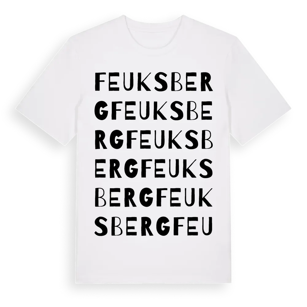 Feuks Berg ordlek t-shirt är inspirerad av Feuks Berg i Blekinge län, Sverige. Tröjan är designad för dig som har en speciell koppling till platsen – oavsett om du bor här, har rötterna här eller bara älskar Feuks Berg.
