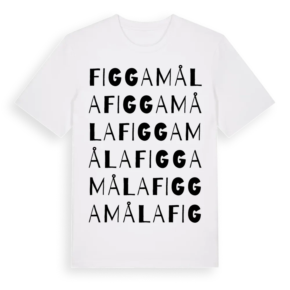 Figgamåla ordlek t-shirt är inspirerad av byn Figgamåla i Blekinge län, Sverige. Tröjan är designad för dig som har en speciell koppling till platsen – oavsett om du bor här, har rötterna här eller bara älskar Figgamåla.