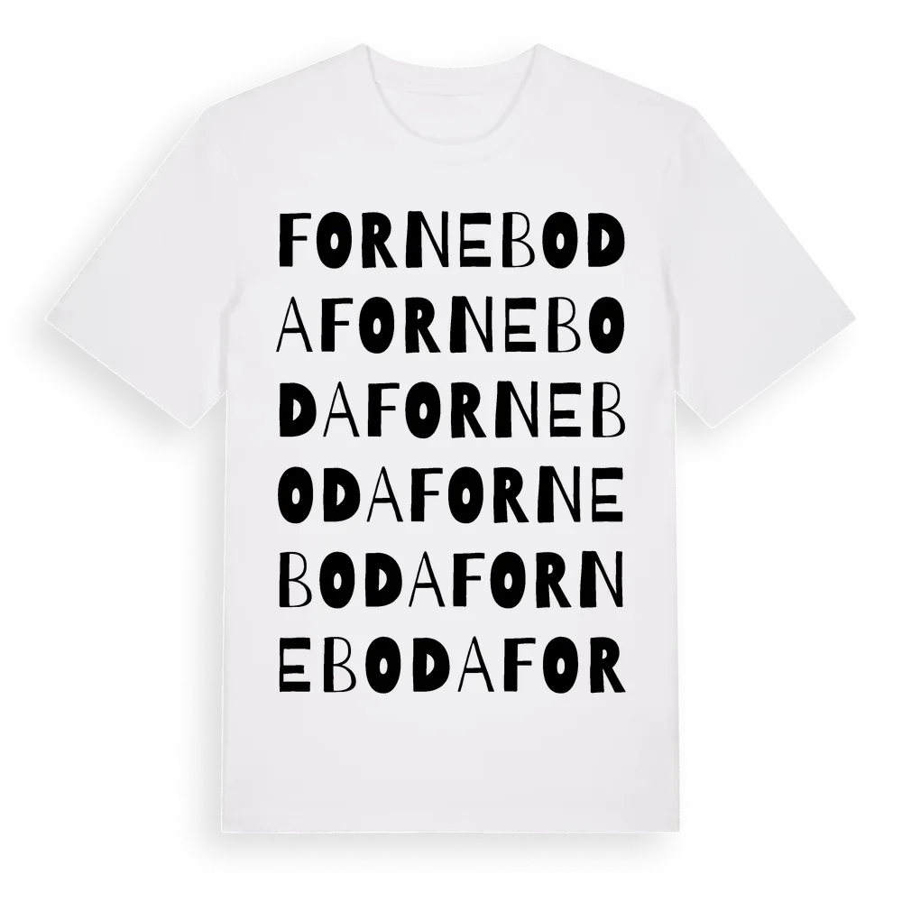 Forneboda ordlek t-shirt är inspirerad av Forneboda i Blekinge län, Sverige. Tröjan är designad för dig som har en speciell koppling till platsen – oavsett om du bor här, har rötterna här eller bara älskar Forneboda.