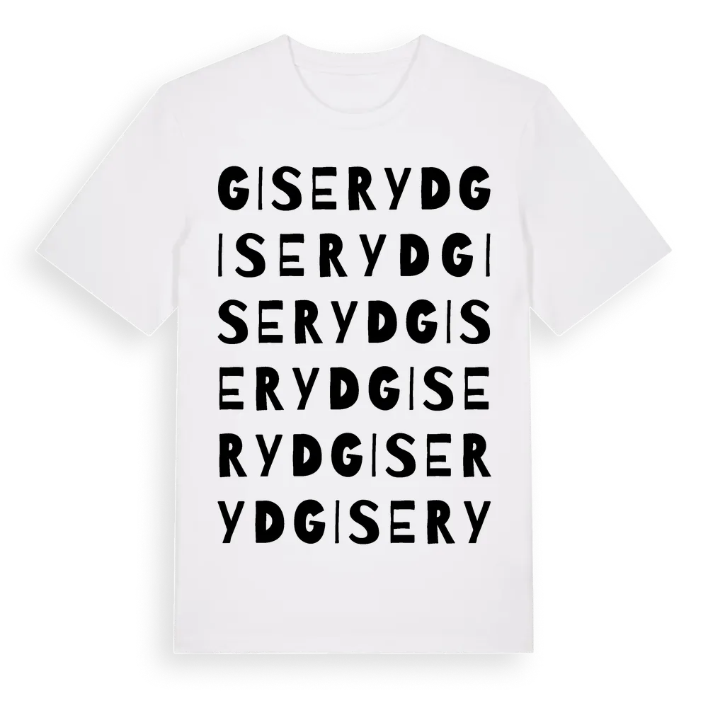 Giseryd ordlek t-shirt är inspirerad av byn Giseryd i Blekinge län, Sverige. Tröjan är designad för dig som har en speciell koppling till platsen – oavsett om du bor här, har rötterna här eller bara älskar Giseryd.