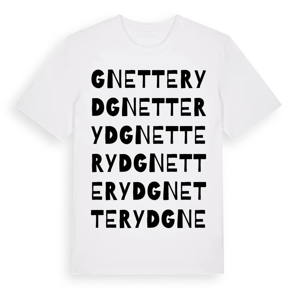 Gnetteryd ordlek t-shirt är inspirerad av byn Gnetteryd i Blekinge län, Sverige. Tröjan är designad för dig som har en speciell koppling till platsen – oavsett om du bor här, har rötterna här eller bara älskar Gnetteryd.