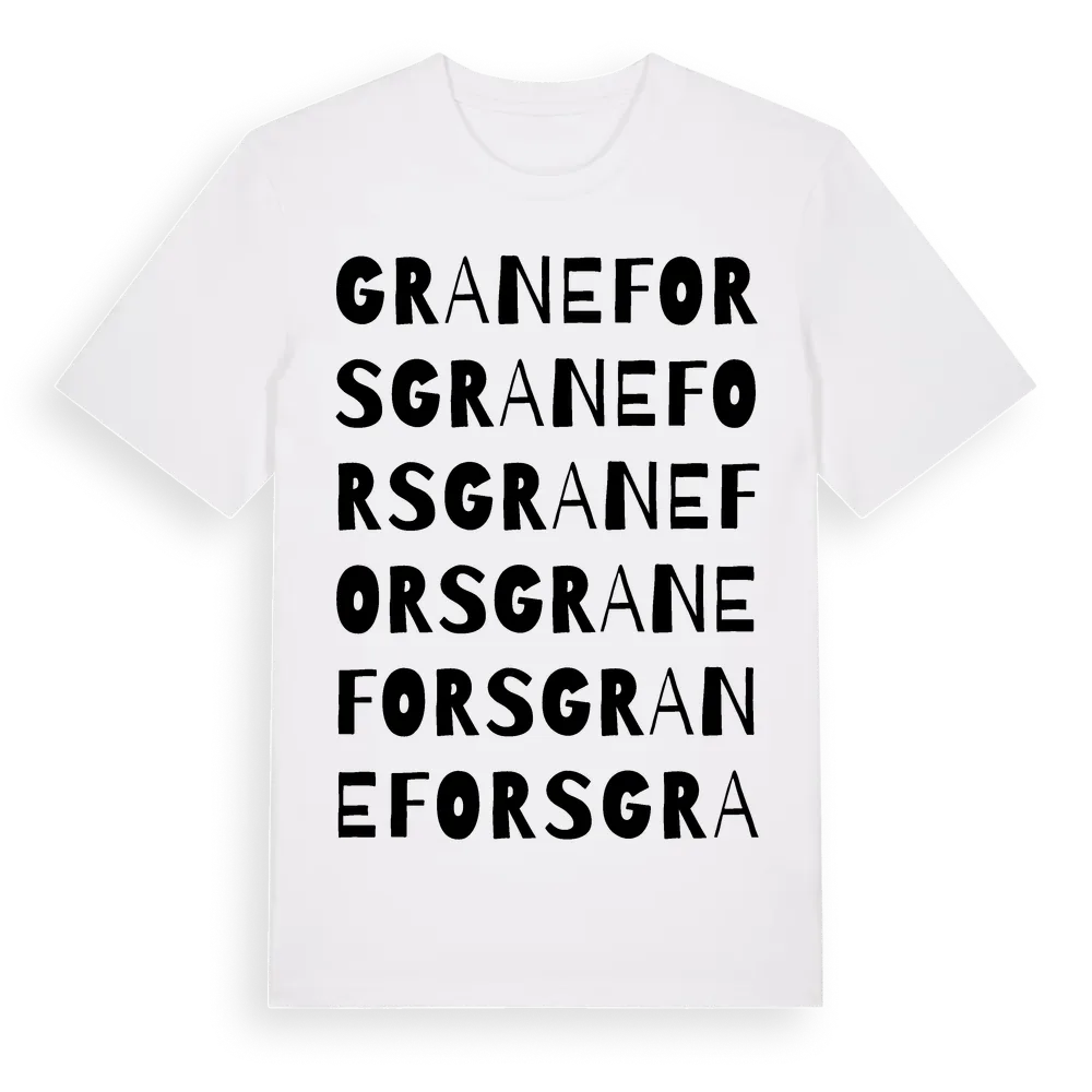 Granefors ordlek t-shirt är inspirerad av byn Granefors i Blekinge län, Sverige. Tröjan är designad för dig som har en speciell koppling till platsen – oavsett om du bor här, har rötterna här eller bara älskar Granefors.