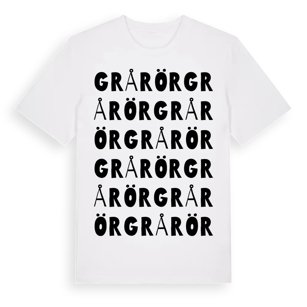 Grårör ordlek t-shirt är inspirerad av Grårör i Blekinge län, Sverige. Tröjan är designad för dig som har en speciell koppling till platsen – oavsett om du bor här, har rötterna här eller bara älskar Grårör.
