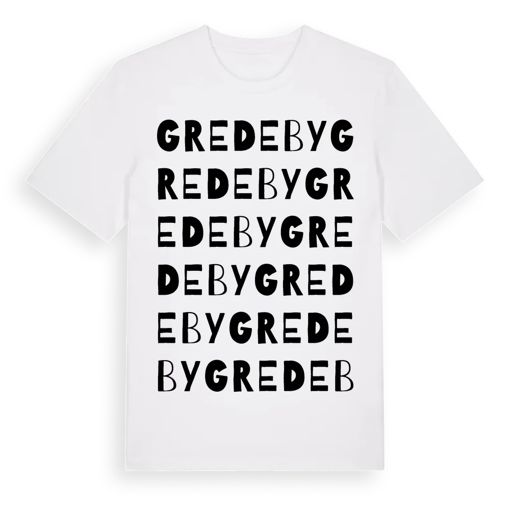 Gredeby ordlek t-shirt är inspirerad av byn Gredeby i Blekinge län, Sverige. Tröjan är designad för dig som har en speciell koppling till platsen – oavsett om du bor här, har rötterna här eller bara älskar Gredeby.
