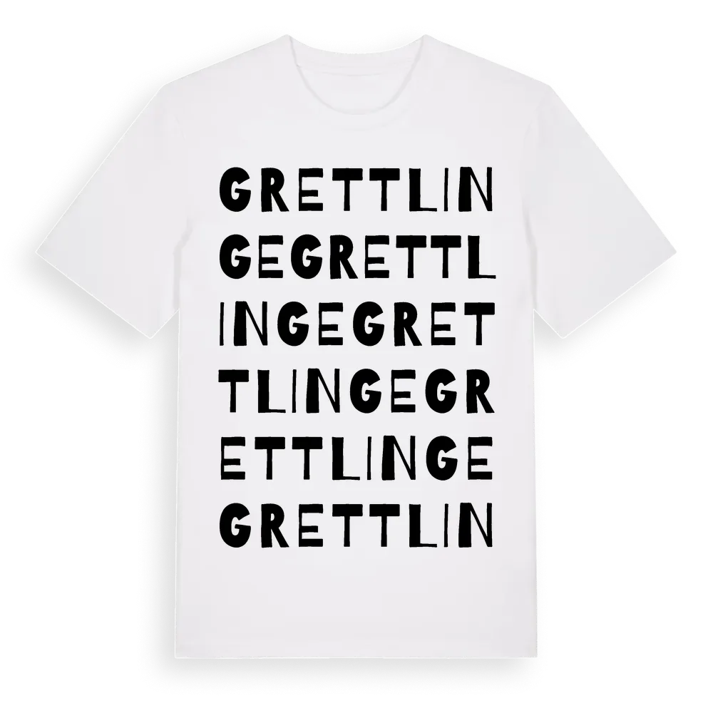 En ordlek byggd på Grettlinges namn. Subtilt och klurig – ett motiv som bara de som verkligen känner platsen fullt ut förstår. Premium bomull, unisex – från byn Grettlinge i Blekinge län.