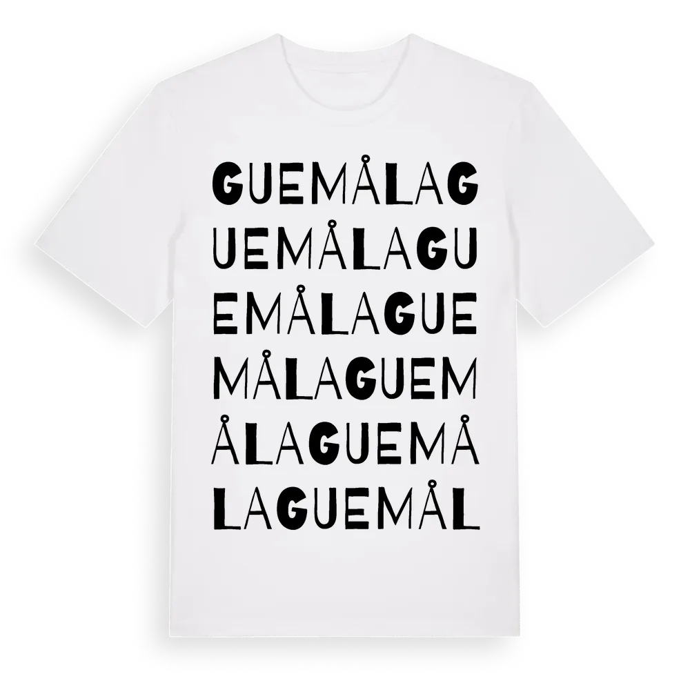 Guemåla ordlek t-shirt är inspirerad av byn Guemåla i Blekinge län, Sverige. Tröjan är designad för dig som har en speciell koppling till platsen – oavsett om du bor här, har rötterna här eller bara älskar Guemåla.