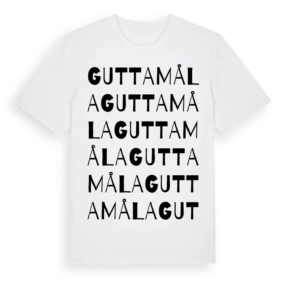 Guttamåla ordlek t-shirt är inspirerad av byn Guttamåla i Blekinge län, Sverige. Tröjan är designad för dig som har en speciell koppling till platsen – oavsett om du bor här, har rötterna här eller bara älskar Guttamåla.