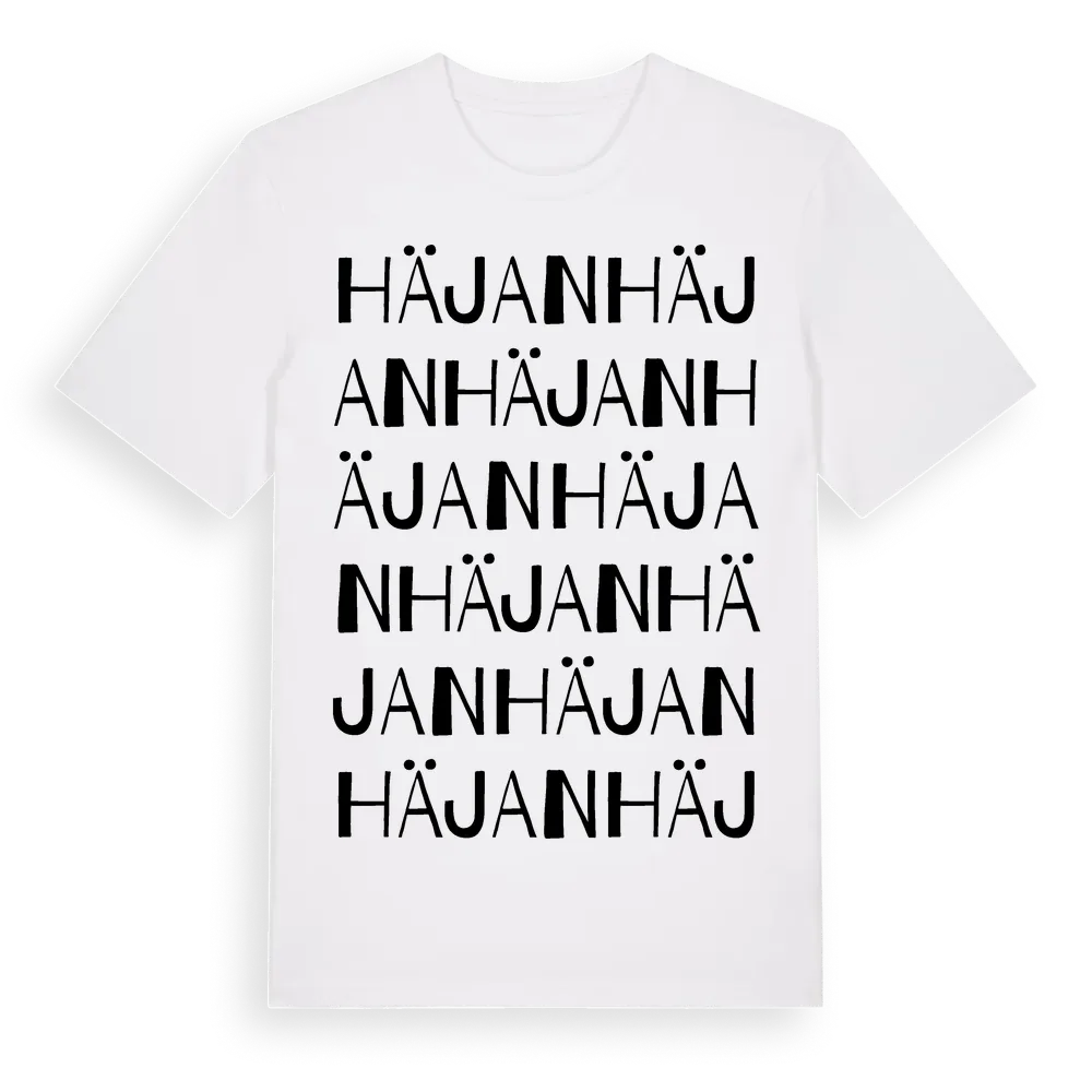 Häjan ordlek t-shirt är inspirerad av Häjan i Blekinge län, Sverige. Tröjan är designad för dig som har en speciell koppling till platsen – oavsett om du bor här, har rötterna här eller bara älskar Häjan.