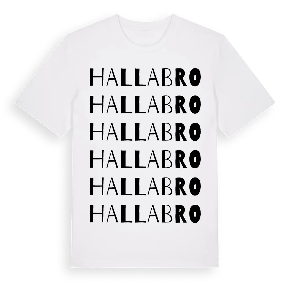 En ordlek byggd på Hallabros namn. Subtilt och klurig – ett motiv som bara de som verkligen känner platsen fullt ut förstår. Premium bomull, unisex – från byn Hallabro i Blekinge län.