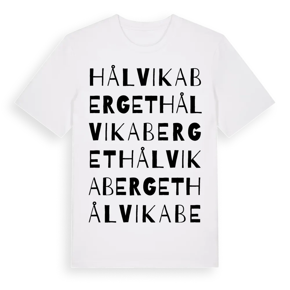 Hålvikaberget ordlek t-shirt är inspirerad av Hålvikaberget i Blekinge län, Sverige. Tröjan är designad för dig som har en speciell koppling till platsen – oavsett om du bor här, har rötterna här eller bara älskar Hålvikaberget.