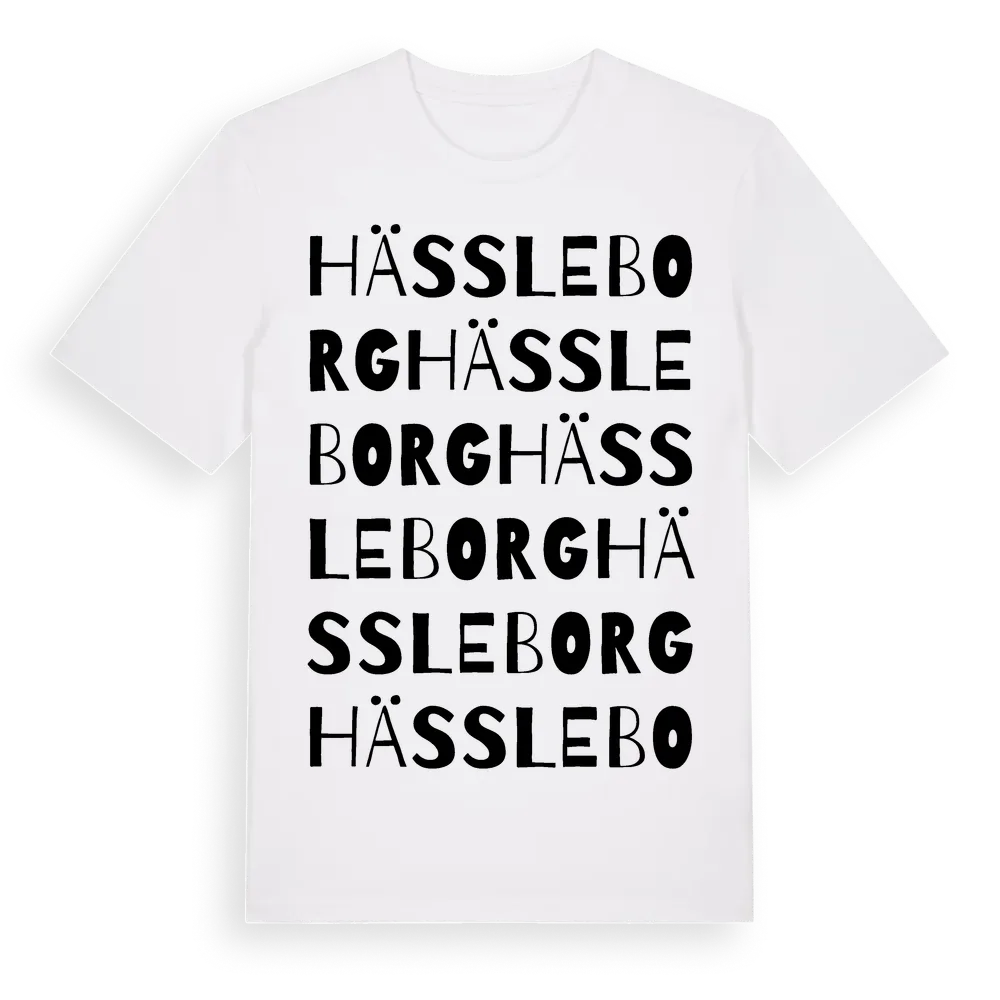 Hässleborg ordlek t-shirt är inspirerad av Hässleborg i Blekinge län, Sverige. Tröjan är designad för dig som har en speciell koppling till platsen – oavsett om du bor här, har rötterna här eller bara älskar Hässleborg.