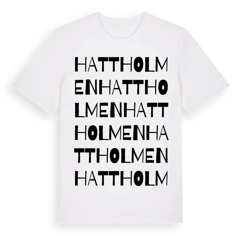 Hattholmen ordlek t-shirt är inspirerad av Hattholmen i Blekinge län, Sverige. Tröjan är designad för dig som har en speciell koppling till platsen – oavsett om du bor här, har rötterna här eller bara älskar Hattholmen.