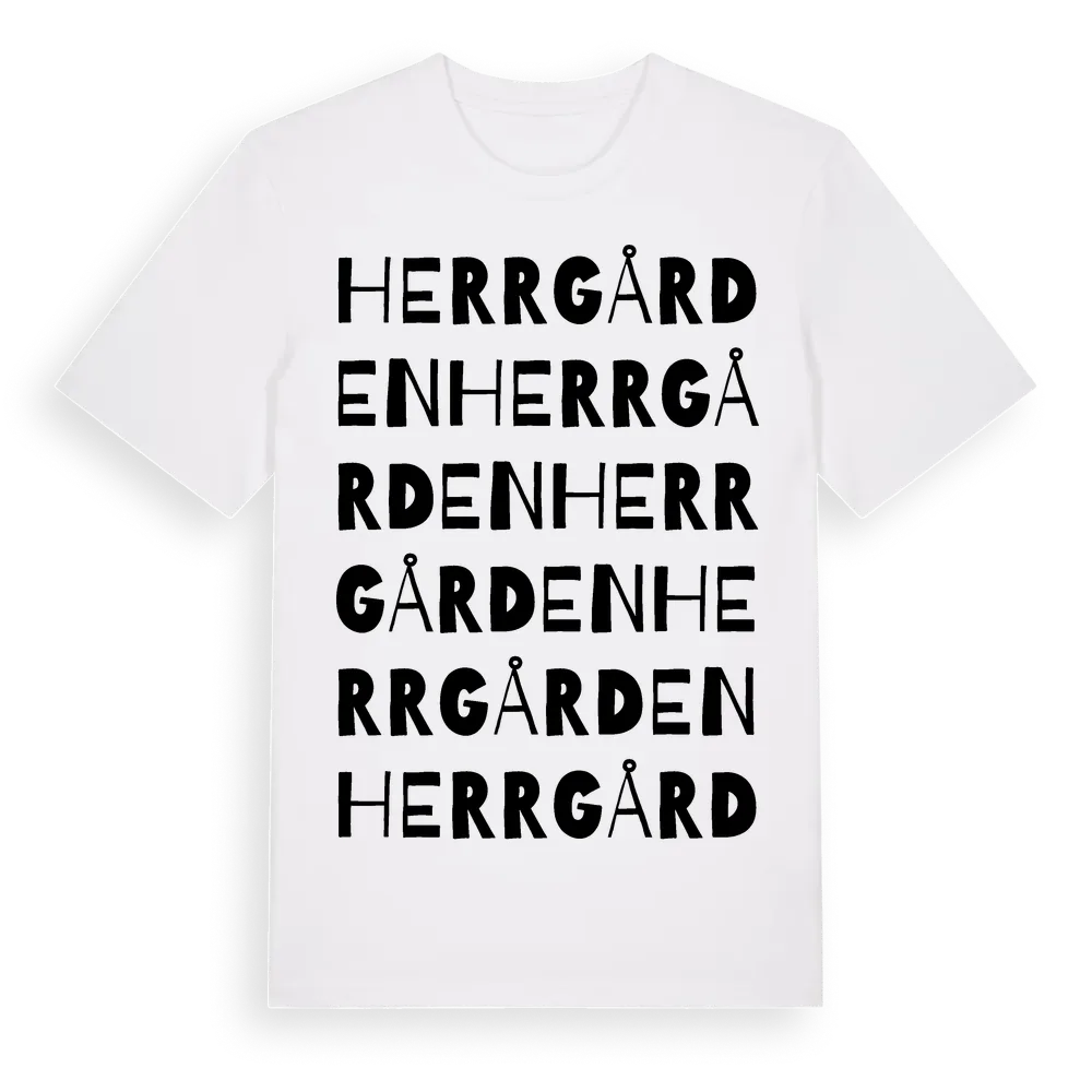 Herrgården ordlek t-shirt är inspirerad av Herrgården i Blekinge län, Sverige. Tröjan är designad för dig som har en speciell koppling till platsen – oavsett om du bor här, har rötterna här eller bara älskar Herrgården.