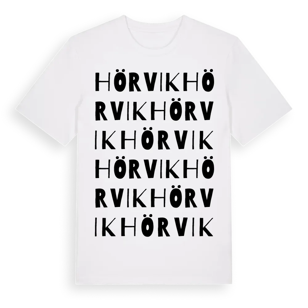 En ordlek byggd på Hörviks namn. Subtilt och klurig – ett motiv som bara de som verkligen känner platsen fullt ut förstår. Premium bomull, unisex – från byn Hörvik i Blekinge län.