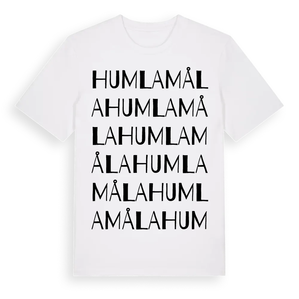 Humlamåla ordlek t-shirt är inspirerad av byn Humlamåla i Blekinge län, Sverige. Tröjan är designad för dig som har en speciell koppling till platsen – oavsett om du bor här, har rötterna här eller bara älskar Humlamåla.
