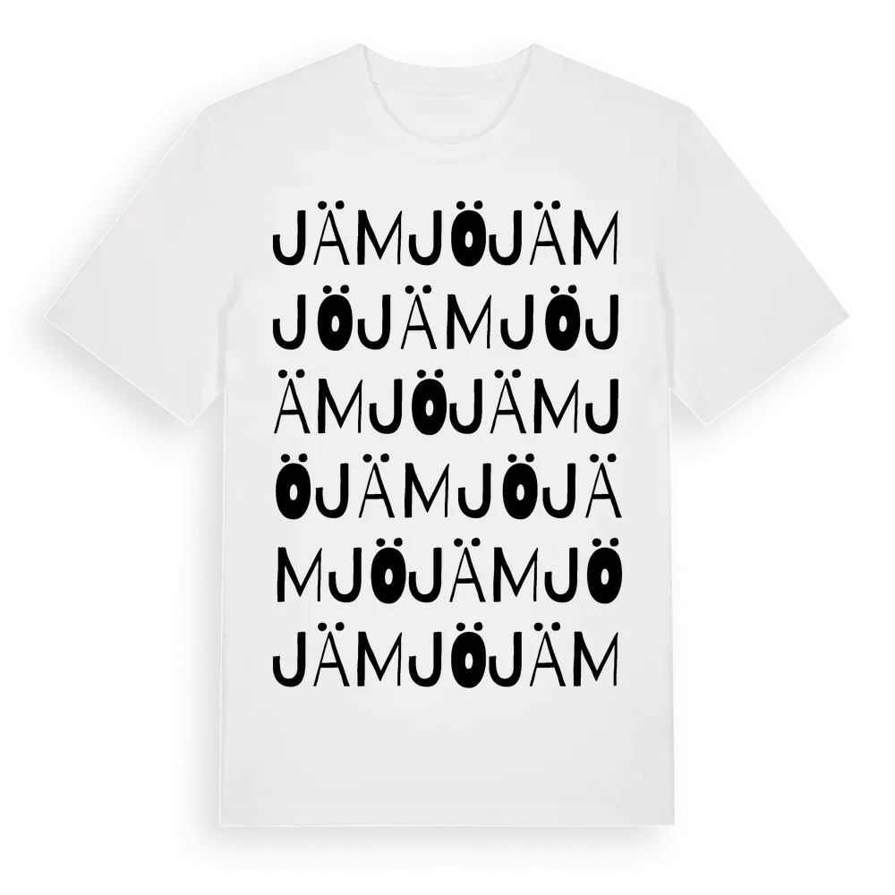 Jämjö ordlek t-shirt är inspirerad av byn Jämjö i Blekinge län, Sverige. Tröjan är designad för dig som har en speciell koppling till platsen – oavsett om du bor här, har rötterna här eller bara älskar Jämjö.