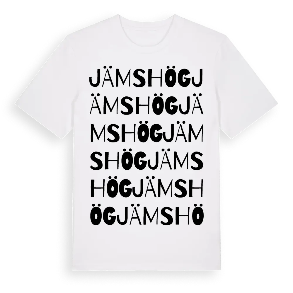 Jämshög ordlek t-shirt är inspirerad av byn Jämshög i Blekinge län, Sverige. Tröjan är designad för dig som har en speciell koppling till platsen – oavsett om du bor här, har rötterna här eller bara älskar Jämshög.