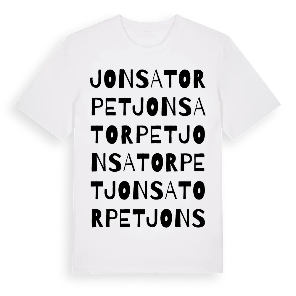 Jonsatorpet ordlek t-shirt är inspirerad av Jonsatorpet i Blekinge län, Sverige. Tröjan är designad för dig som har en speciell koppling till platsen – oavsett om du bor här, har rötterna här eller bara älskar Jonsatorpet.