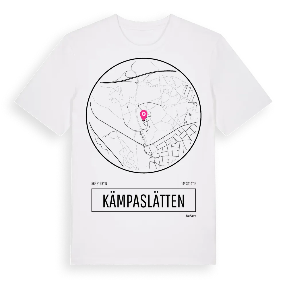 Kämpaslätten t-shirt är inspirerad av stadsdelen Kämpaslätten i Blekinge län, Sverige. Tröjan är designad för dig som har en speciell koppling till platsen – oavsett om du bor här, har rötterna här eller bara älskar Kämpaslätten.